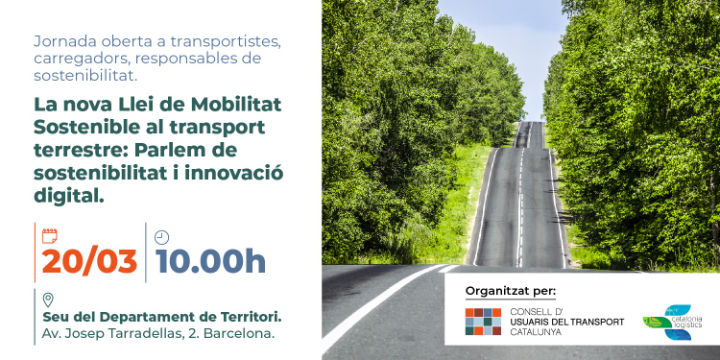El proper 20 de Març de 9h30 a 12h el Consell d'usuaris del Transport de Catalunya i el Cluster Catalonia Logistics realitzem una jornada per debatre sobre la Nova Llei de Mobilitat Sostenible en el transport Terrestre de Mercaderies.